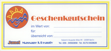 Sie erhalten den Gutschein in unserem Geschäft oder auf Nachfrage per Post.